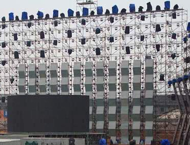 雷亞架主要用于大型演唱會的燈光架、背景架。這種雷亞架基本原理,采用鑄鋼或沖壓輪盤焊接在立柱上,橫桿通過橫桿頭與立柱上的輪盤進行聯接,通過銷片進行固定。