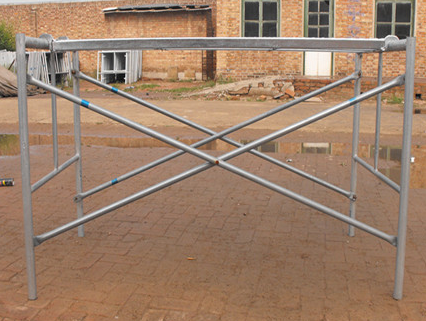 門式腳手架的搭設(shè),應(yīng)先在端點底座上插入兩榀門架,并隨即裝上交叉桿固定,鎖好鎖片,然后搭設(shè)以后的門架,每搭一榀,隨即裝上交叉桿和鎖片。
