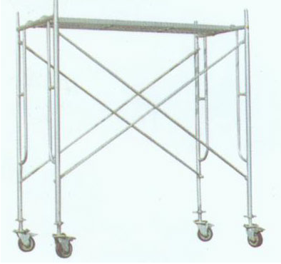 移動腳手架主要有主框,橫框,交叉斜撐,腳手板,可調(diào)底座等組成。交叉拉桿有稱作斜拉桿、是縱向連接兩副門架的交叉型拉桿。