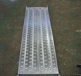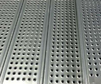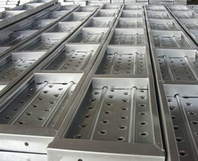 我公司生產(chǎn)的鋼踏板具有規(guī)范成型的排列凸孔,防滑系數(shù)高、效果好。踏板兩側(cè)的弓形設(shè)計(jì)和底部筋板的牢固焊接更增加了其強(qiáng)度,3米長(zhǎng)腳手板可同時(shí)承受5-6人的站立而不變形,堅(jiān)固耐用。