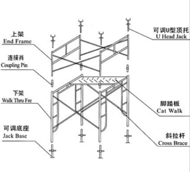 目前,國內(nèi)各廠對門式腳手架主要部件的稱呼不一致。各有一套名稱,給腳手架的推廣應用帶來很大不便。門式腳手架架支模其實七個部分組成,分為:上架、連接肖、下架、可調底座、可調U型頂托、腳踏板、斜拉桿。下面是門式腳手架支模圖解。再設計上我國幾個生產(chǎn)廠的產(chǎn)品規(guī)格…