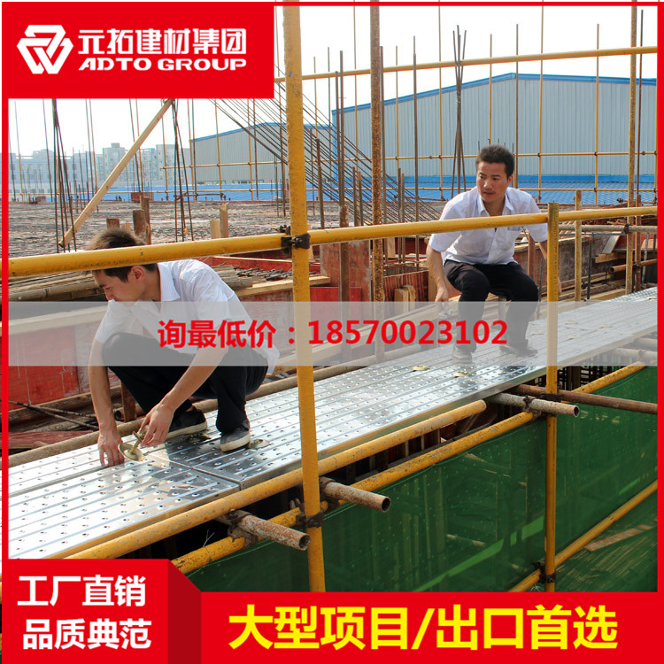 近幾年,鋼踏板市場(chǎng)非常好,很多的工程項(xiàng)目都換掉了以前的竹木跳板,鋼網(wǎng)跳板也不再受歡迎。市場(chǎng)需求導(dǎo)致國(guó)內(nèi)廠家遍地開花,小作坊居多,質(zhì)量不可靠。這里主要介紹一個(gè)腳手架鋼踏板第一制造商——元拓集團(tuán)! 元拓鋼踏板產(chǎn)品詳細(xì)描述: 1.有沖孔的鋼跳板耐用,減重…