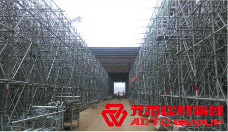 元拓盤扣式腳手架是一種新型腳手架,不管是安裝還是拆卸都很方便,并且十分的穩(wěn)定牢固,承受力大,常用于高架橋等橋梁工程、高價(jià)水塔、發(fā)電廠、工廠廠房、倉儲(chǔ)貨架和大型舞臺(tái)等。