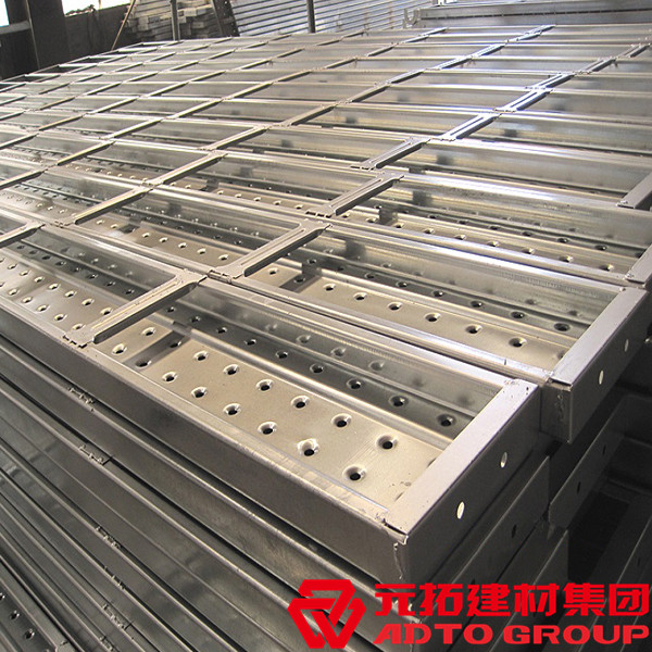 鋼跳板是市場上主要的腳手架配件,作為高處施工平臺使用。施工人員在上面行走,以及搬運(yùn)材料用的器材。